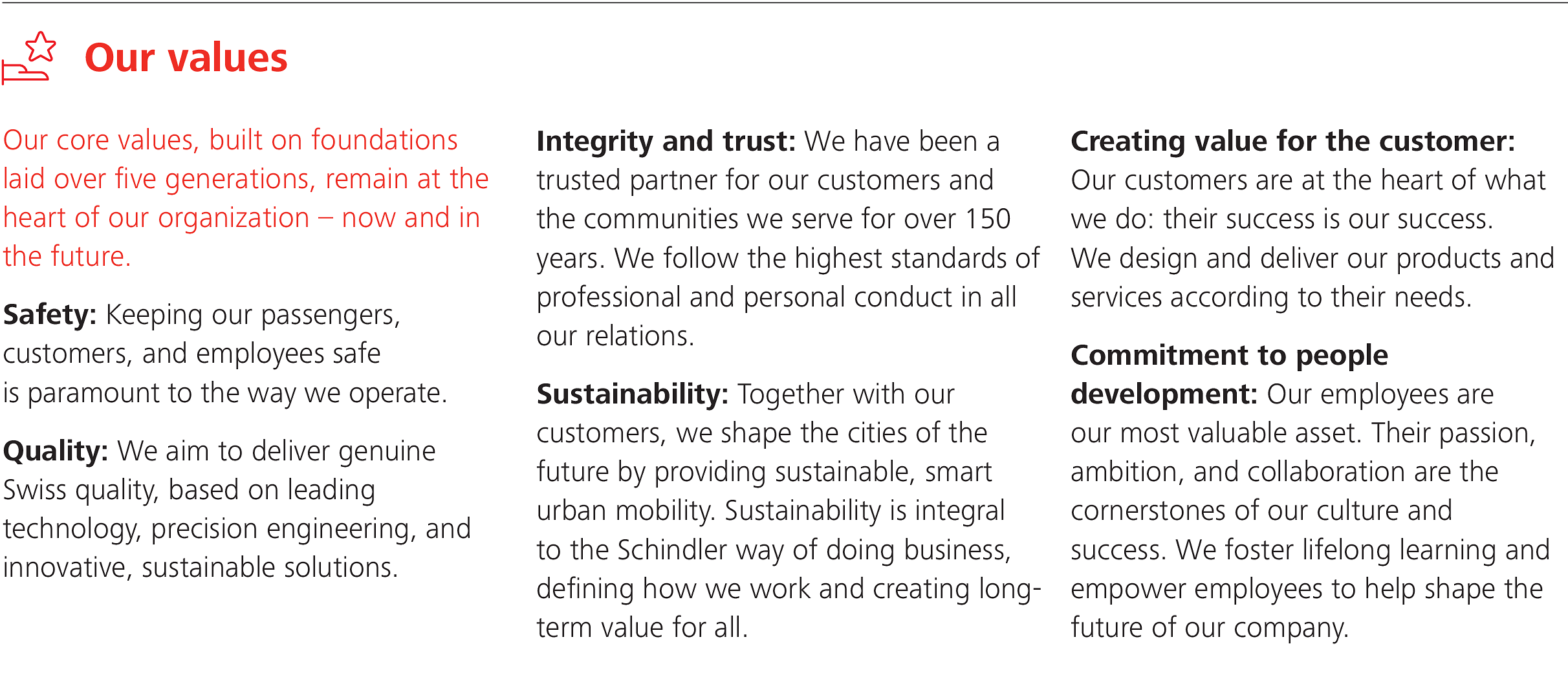 Schindler elevators, escalators, and moving walks transport more than 2 billion people up and down buildings and across transportation hubs every day. Since our foundation in Central Switzerland in 1874, we have been pioneering new technologies for future mobility. Together with our customers, we make cities more livable.