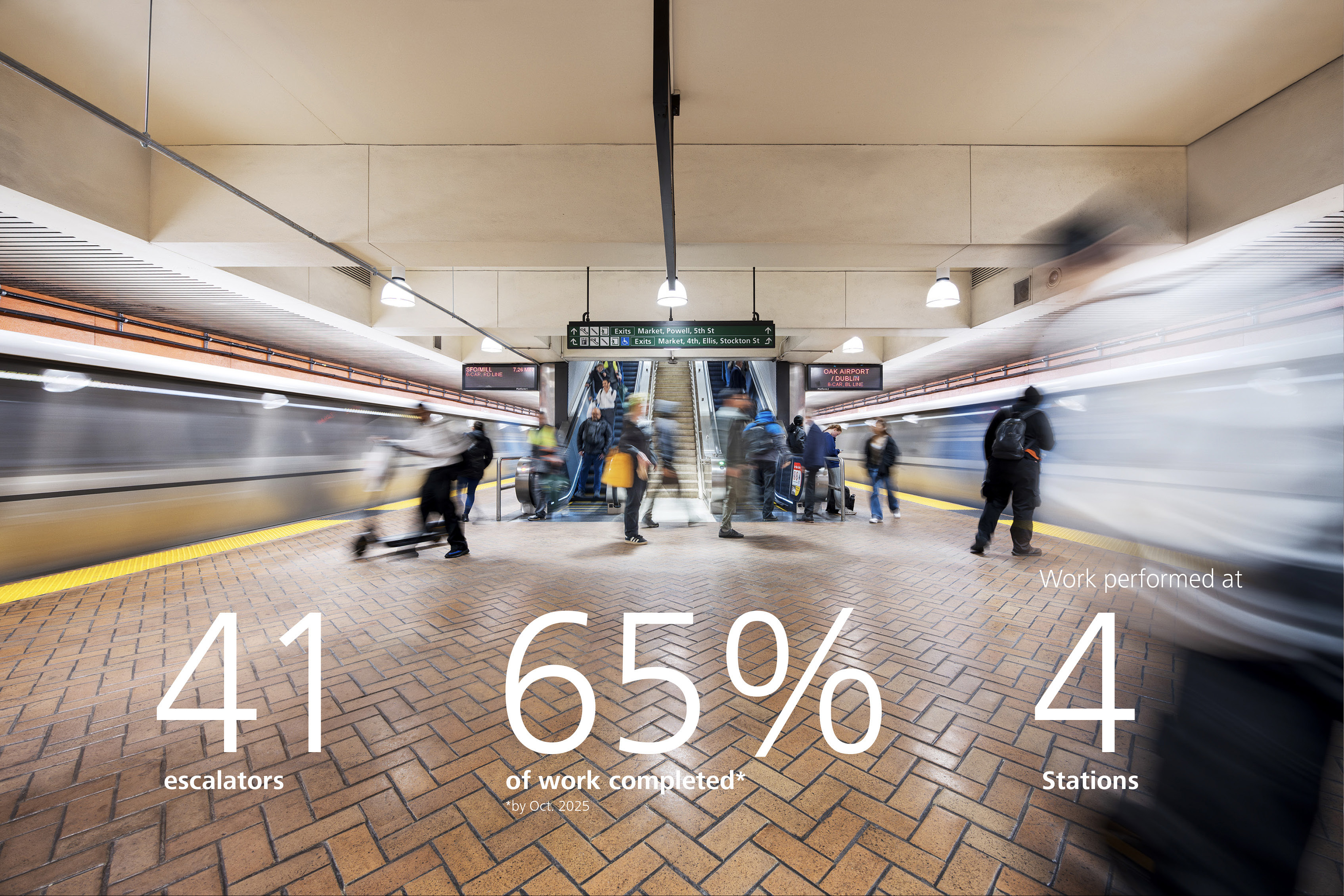 Since 2020, Schindler teams in California have played a key role in this massive underground modernization project, retrofitting 41 escalators across four BART stations – Embarcadero, Montgomery Street, Powell Street, and Civic Center. Located beneath the legendary Market Street in downtown San Francisco, these are the busiest of all 48 BART stations in terms of passenger volume.