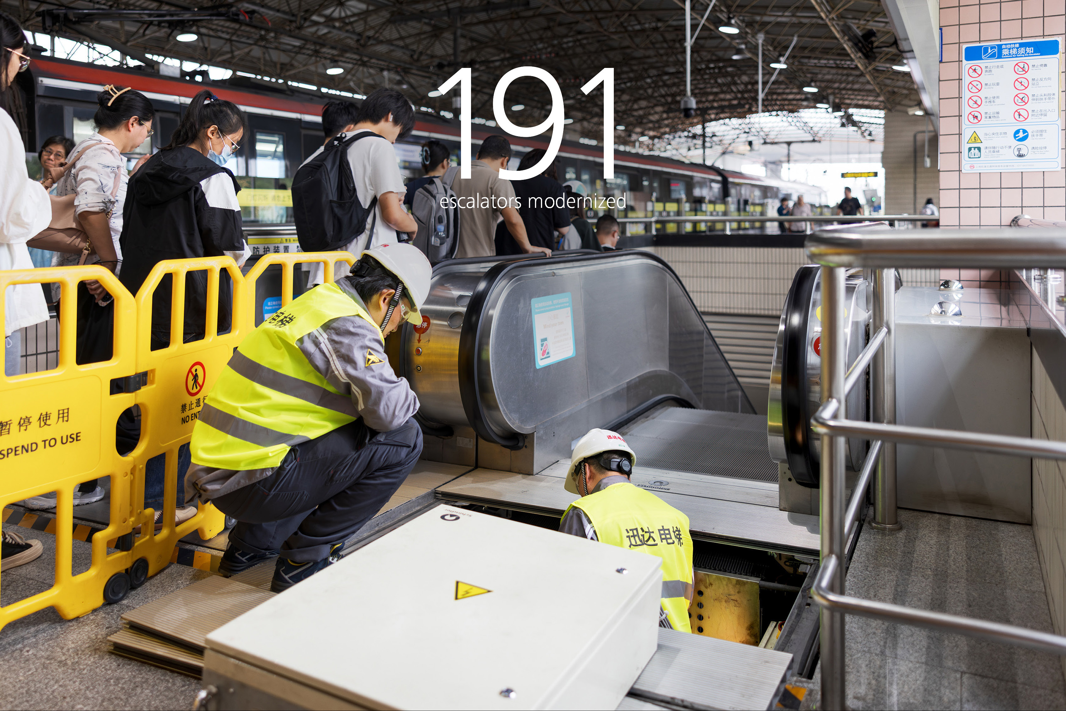 “Overall, the new escalators run smoother and are more efficient than before,” says Yichao Shi. “The upgrades have improved the commuting experience, making it easier for hundreds of thousands of people to get to where they need to go,” he adds, as he boards a train to continue his work at the next station along the line.
