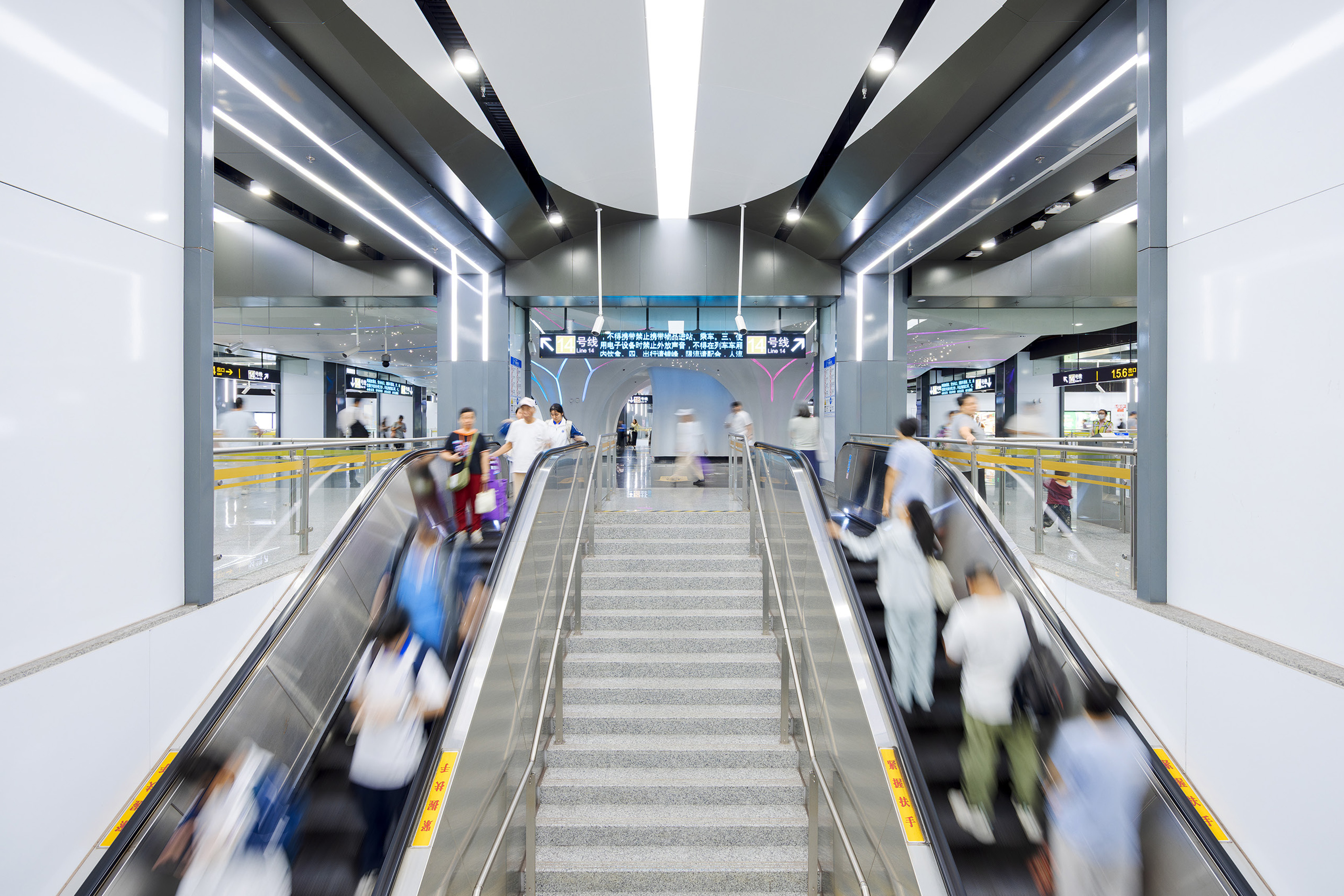 When the line opened at the end of 2021 to help connect the east with the west of the city, Schindler’s team in Shanghai installed 237 Schindler 9700 escalators. Ranging in height from 4 to 15 meters, they’re spread over 14 metro stations along the Pudong section of Line 14, from Lujiazui to Guiqiao Road.